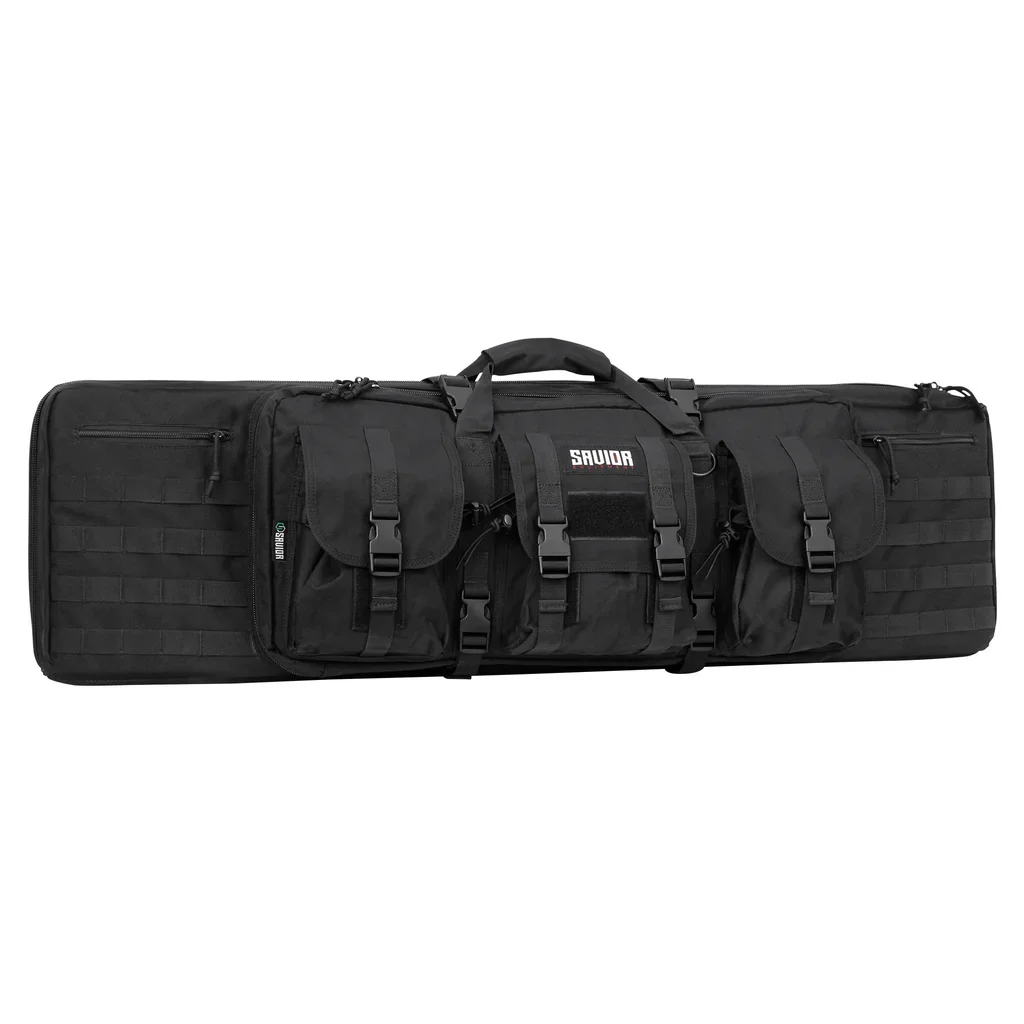 The American classic double rifle bag has double rifle slots - fully padded edges designed to protect & secure your valuable firearms from unwanted movement & damage during transportation three extra exterior pockets to store additional equipment & accessories in just one bag compatible with Alice and Molle load bearing systems to carry more variety of equipment. Anti-theft zippers - Our rifle bag is equipped with lockable zipper sliders on the two main firearm compartments & paracord zipper pulls to make it simple multiple carrying options - you can carry our rifle bag with hook & loop fastener carrying handle or with adjustable padded backpack straps to free your hands.