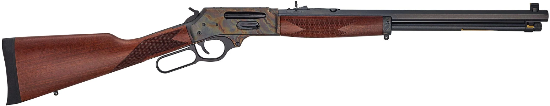 The smooth Henry action provides fast, reliable follow-up shots, aided by side ejection that keeps spent brass clear of optics and safely forward, making the rifle equally accommodating for right- and left-handed hunters. A drilled and tapped receiver allows for easy scope mounting, while the removable tube magazine and side loading gate offer flexible loading options and safe unloading in the field. Sling swivel studs, a ventilated rubber recoil pad, and an internal transfer bar safety system round out a feature set that blends modern practicality with classic design.