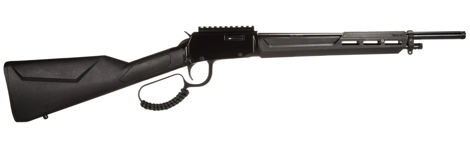 The Rossi Rio Bravo is based on the company’s popular line of R92 lever-action firearms. Featuring an ergonomic black polymer stock with rear sling mount and forearm with accessory slots for lights, sling attachments etc. the Rio Bravo brings the tactical rifle experience to the rimfire lever-action category. The rifle comes with an aluminum Picatinny rail to accommodate a red dot optic or scope, a medium loop lever, threaded barrel, and 10 round capacity.